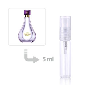Parisian Chic opens with a vibrant burst of juicy Raspberry and Pomegranate, a playful yet sophisticated introduction. The heart of the fragrance unfolds into a rich and romantic bouquet of Rose, Gardenia, and Jasmine – a classic floral composition that exudes femininity and grace. Finally, the fragrance settles into a warm and sensual base of creamy Sandalwood, captivating Amber, and soft Musk, creating a lingering impression that is both alluring and unforgettable. The dominant Amber accord provides a luxurious and sophisticated depth, perfectly balancing the fruity top notes and the floral heart.
