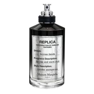 The packaging of Across Sands, like all Replica fragrances, is renowned for its minimalist and apothecary-inspired design. The clear glass bottle with its cotton label, resembling a vintage garment tag, emphasizes the brand's focus on the "replica" concept and the scent itself, rather than ostentatious branding. This understated elegance is a signature of Maison Margiela.