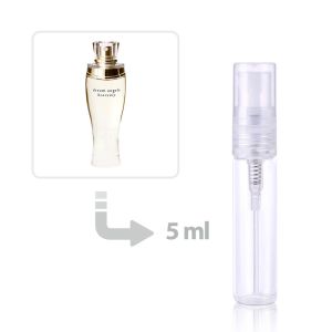 Dream Angels Heavenly opens with a vibrant and sparkling burst of top notes: the unexpected spice of cardamom intertwines with the fresh greenness of ivy, the juicy sweetness of quince, and the bright zest of mandarin orange. This lively introduction gives way to a heart of captivating floral notes. The delicate peony and freesia dance alongside the prominent, powdery elegance of iris, the serene purity of lotus, and the velvety softness of violet. These floral notes create a mesmerizing bouquet at the perfume's core. The fragrance settles into a warm and sensual base of creamy vanilla, smooth sandalwood, and captivating musk, with a final touch of exotic orchid adding a unique depth and richness to this enchanting composition. The overall effect is a beautifully balanced and utterly irresistible scent that's both sophisticated and inviting.